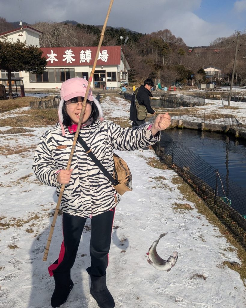 (ワカサギ釣りが中止となり、山本養鱒場で釣り堀)